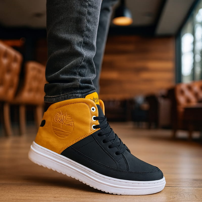 کفش ساقدار مردانه مشکی عسلی مدل R88